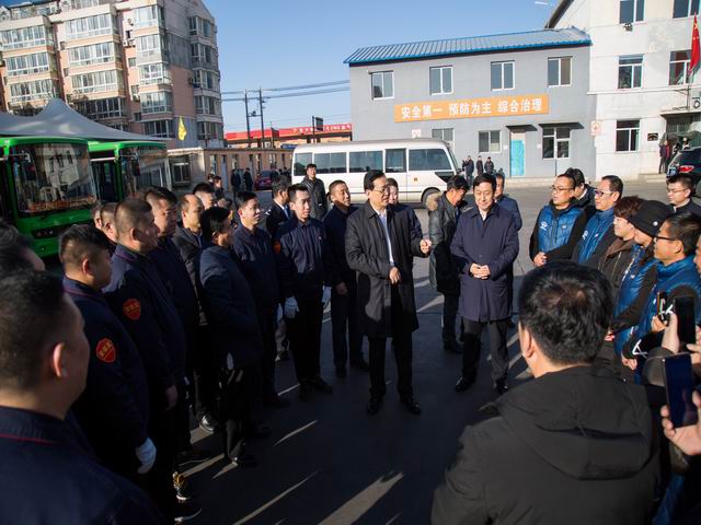 1月23日下午,遼寧省副省長(zhǎng)王明玉、錦州市市長(zhǎng)于學(xué)利等領(lǐng)導(dǎo)來(lái)到錦州公交視察春運(yùn)工作,看望并慰問(wèn)了一線公交職工,向他們致以新春的誠(chéng)摯問(wèn)候和美好祝福。王明玉對(duì)節(jié)日期間依舊堅(jiān)守工作崗位,服務(wù)市民出行的所有公交職工、駕駛員表示感謝,肯定了錦州公交為市民安全順暢出行所作出的積極貢獻(xiàn)。王明玉要求,公交駕駛員要做好本職工作 ,給乘客營(yíng)造一個(gè)舒適、安全、文明、快捷的乘車環(huán)境。各相關(guān)部門人員要堅(jiān)守崗位,立足本職,做好公交文明優(yōu)質(zhì)服務(wù)工作,確保每一輛公交車運(yùn)營(yíng)安全、有序,積極推動(dòng)公交各項(xiàng)工作再上新臺(tái)階。他囑咐廣大駕駛員要注意勞逸結(jié)合,在春運(yùn)期間要做到安全與服務(wù)并重,為全市人民度過(guò)一個(gè)祥和歡樂(lè)的新春佳節(jié)提供更好、更安全的公共交通保障。 市交通局副書(shū)記、副局長(zhǎng)喬利,副局長(zhǎng)陳久東,交通集團(tuán)董事長(zhǎng)王琳、公司黨委書(shū)記、總經(jīng)理李國(guó)政等領(lǐng)導(dǎo)陪同。